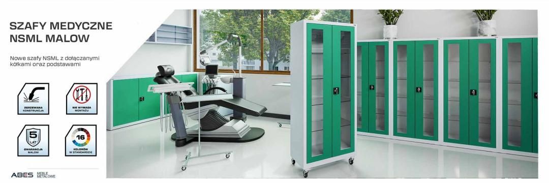 Szafa lekarska NSML - dołączane kółka i przestawne półki